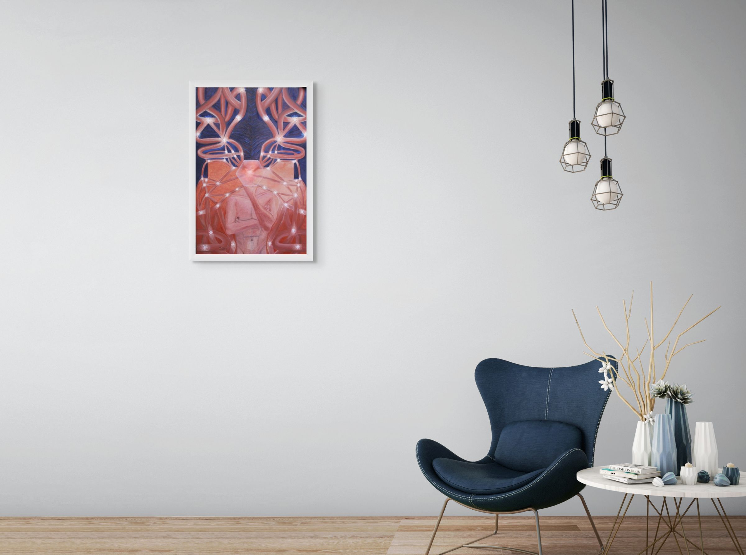 You can see what the Original Artwork looks like in your own space. You can interact with the artwork in your space, using Augmented Reality. You can upload a photo from your room, or just view it in a mockup space. Click the options bellow to start!